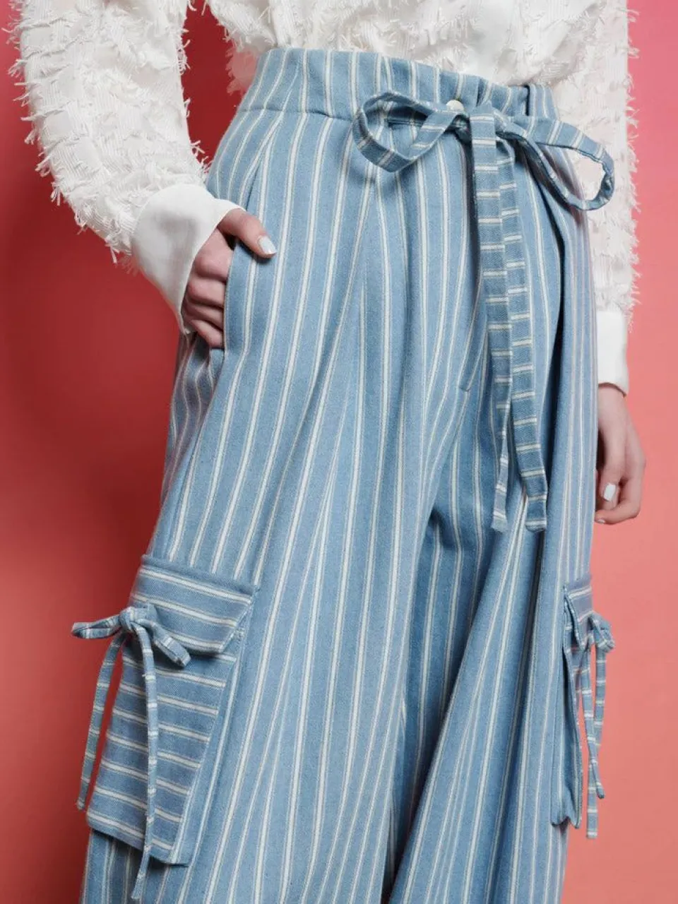 Stride Into Spring With The Cleo Cargo Trousers, A Harmonious Blend Of Utility And Style. These Trousers Reimagine The Classic Cargo In A Striking Stripe Denim Fabric, Making Them A Standout Addition To Your Wardrobe Essentials. Denim And Stripes Come Together To Create A Spring Must-Have That’S As Versatile As It Is Fashionable. The Cleo Trousers Are A Testament To The Joy Of Dressing Up, Effortlessly Elevating The Everyday With A Nod To Nautical Vibes And The Endless Possibilities Of Spring.