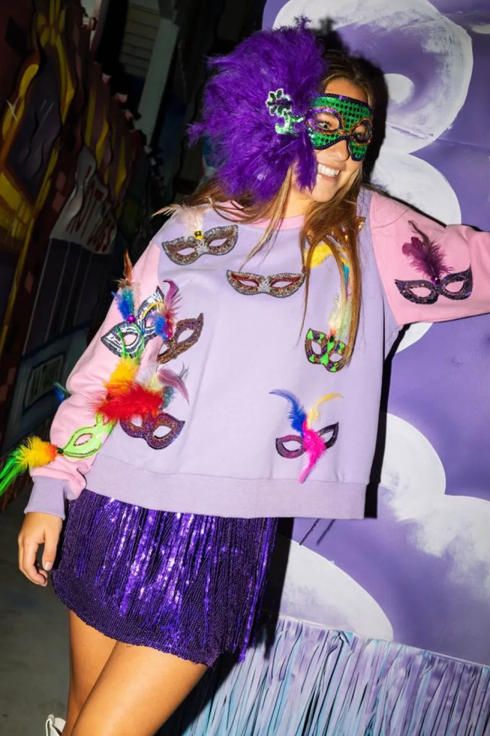 Clearance Queen Of Sparkles Mardi Gras Feather Mask Sweatshirt