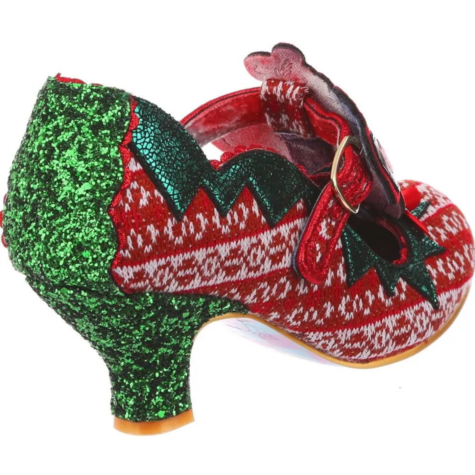 Time To Play Some Reindeer Games? Be Your Best Elf Self In These Festive Fantasies! Adorned With The Cutest Little Reindeer Friend You Ever Did See, The Christmas Jumper Knit Is Topped With Sweet Red Satin Bow. With A Comfy Green Glitter Heel And T-Bar Buckle Strap, These Shoes Will Be Top Of Your List This Year!