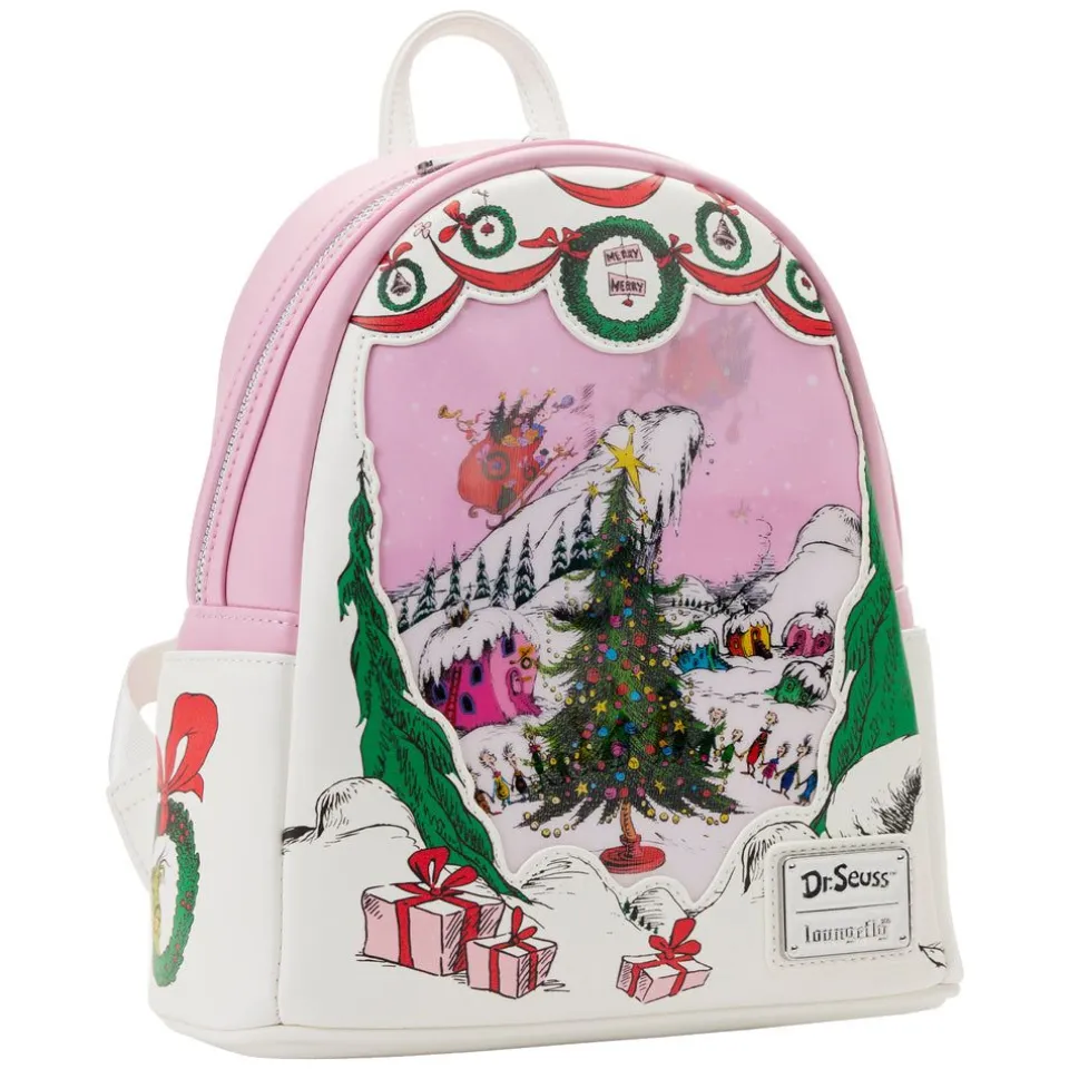 Look Out Below! The Grinch Is Determined To Stop Christmas From Coming, And He’S Snatched Up All Of Whoville’S Holiday Festivities. Will A Song Filled With Cheer Be Enough To Thaw His Icy Heart? The Loungefly Dr. Seuss™ Lenticular Scene Mini Backpack Displays A Heartwarming Scene From Dr. Seuss’S How The Grinch Stole Christmas. On The Front, The Grinch Climbs Mount Crumpit In A Sleigh Overloaded With Whoville’S Presents And Décor. Down Below, The Citizens Of Whoville Join Hands In Song To Welcome Christmas Despite The Grinch’S Scheme. Shift The Bag In The Light To See The Grinch Race Down The Mountain, Returning The Sleigh’S Contents In A Change Of Heart! On The Back, The Grinch Wiggles His Way Down A Frosted Chimney. This Nostalgic Accessory Brings Holiday Cheer To Any Outfit And Is Perfect For Fans Looking To Keep One Of Their Favorite Stories Close.