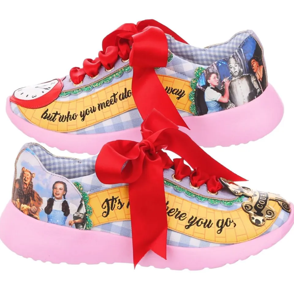 Brains, Heart And Courage – Everything Needed For The Best Of Friends! These Adorable Statement Trainers Are Adorned In Everything The Wizard Of Oz™, And The Result Is Fabulous! The Yellow Brick Road™ Winds Around The Shoes, With Beautiful Script Scrolling Across, Leading To The Two Statement And Unique Applique’S On Each Toe – A Medal For Courage And A Ticking Heart! Fastened With Brilliant Red Ribbons, And Featuring A Print Of Our Favourite Adventurers On The Heel, These Trainers Are Surely Not To Be Missed!
