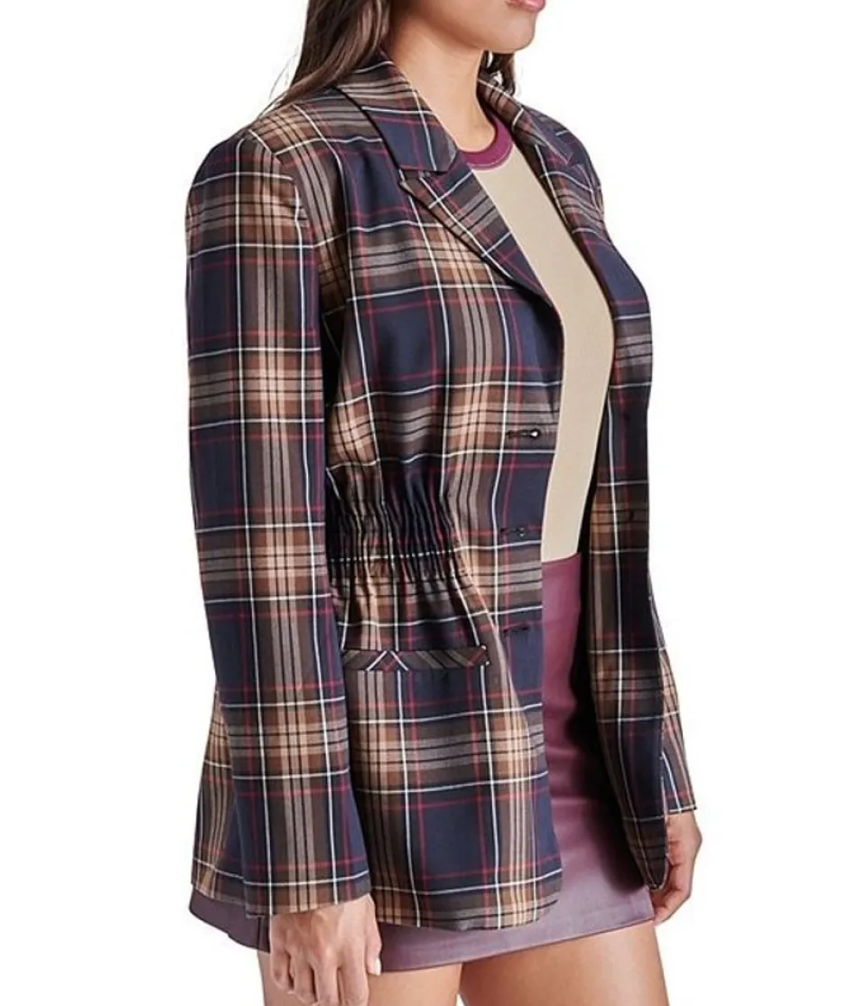 New Steve Madden Frida Plaid Jacket Navy