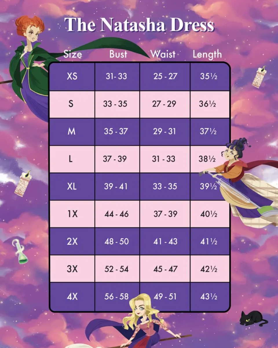 The Sanderson Sisters Have Conjured A Spell For Style! Invite Them To Take Possession Of Your Ensemble With The Hocus Pocus Sunset Sanderson Sisters “Natasha” Dress. This Belted, A-Line Style Dress Features An All-Over Print Of The Sanderson Sisters As They Ride Through A Sunset Sky On Their Brooms. Look Closely And You’Ll Find Other Movie Motifs Drifting In The Clouds As The Sisters Run Amuck! Up Above, An Embroidered Peter Pan Collar Takes The Form Of The Loveable Black Cat, Thackery Binx.