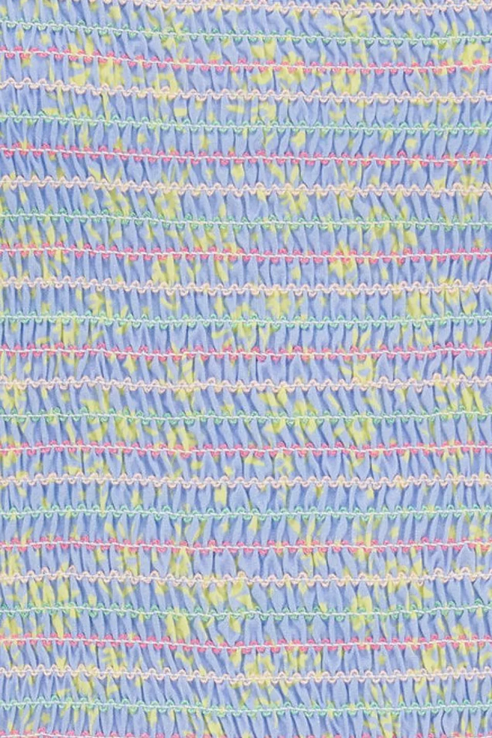 A Beautiful Romantic Summer Dress, Featuring Our Delicate Pale Blue And Pastel Yellow Star Meadow Print On A Feminine Shirred Bust Sundress. The Ember Falls At A Midi Length With A Full Skirt And Pockets And Is Finished With Pink, Coral And Green Stitching On The Bust Shirring.