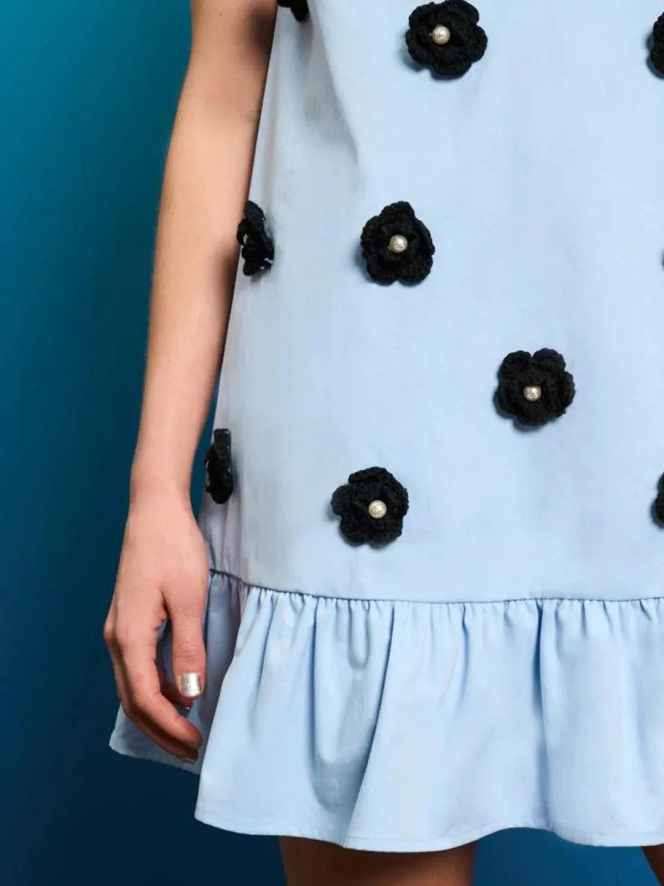 Embrace The Allure Of Summer With The Capri Crochet Mini Dress. Crafted From A Soft Woven Fabric, This Dress Exudes A Sense Of Breezy Elegance. The Intricate Flower Crochet Trims, Adorned With Pearl Centres, Add A Touch Of Delicate Charm And Femininity. Embrace The Beauty Of The Season And Let This Dress Become Your Go-To For Warm-Weather Style.