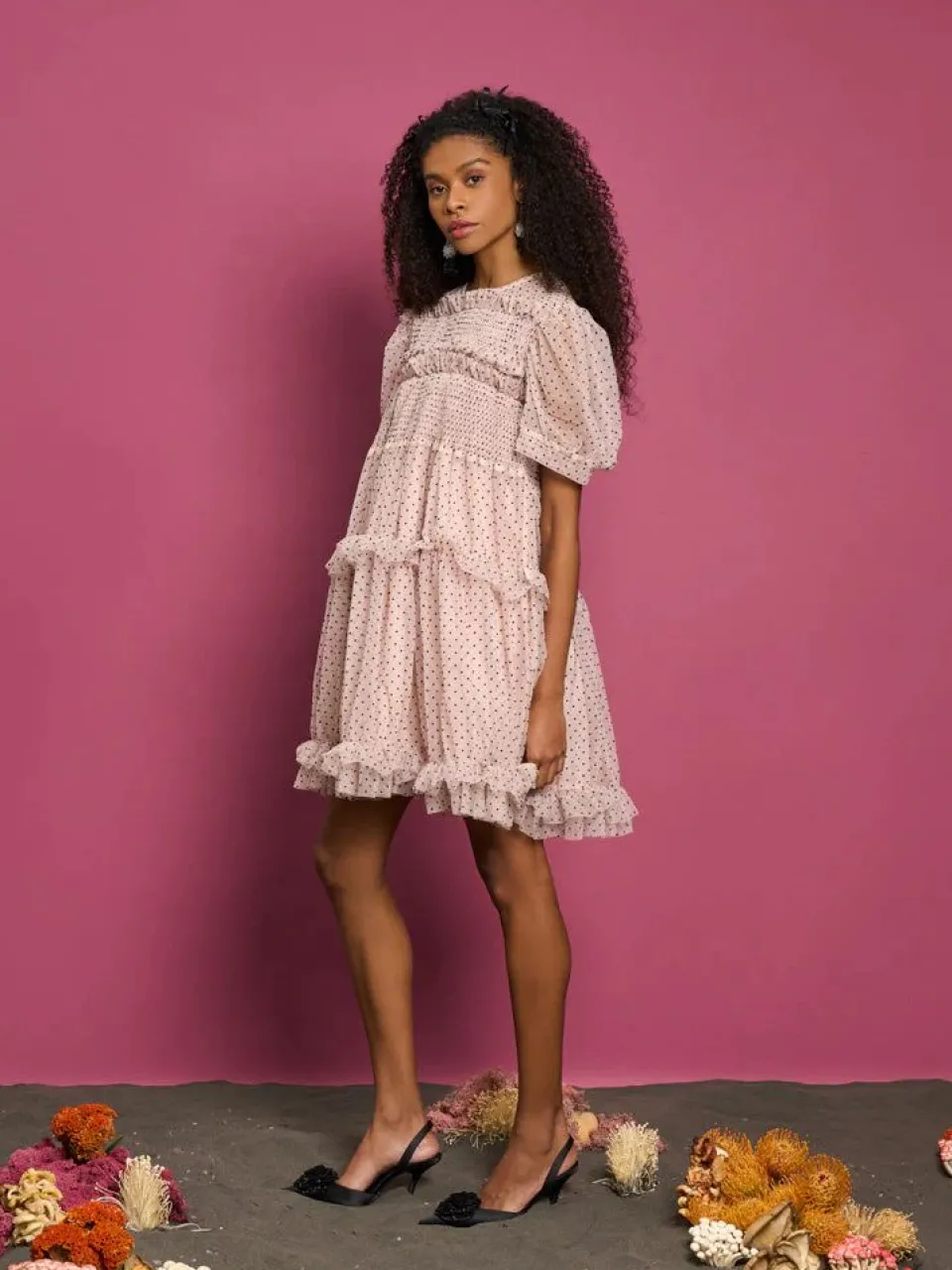 Bonny Corals Are Enticed By This Delightful Seahorse Mini Dress. The Tiered Ruffle Skirt Denotes An Air Of Fantasy Alongside An Elasticated Shirring Bodice. This Dress Is Fully Lined And The Lovely Polka Dot Tulle Fabric Creates A Feeling Of Whimsy For All Who Wear It.