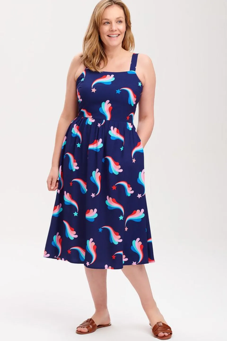 We’Re Completely Smitten With This Extra-Special Dress, Featuring A Psychedelic Shooting Star Print On A Feminine Fitted Waist Sundress. The Francine Dress Includes Practical Thick Straps And Those All Important Pockets. The Extra Special, Hand-Drawn Star Flourish Print Was Created By Olivia In Our Seaside Studio, So You Won’T Find It On Clothes Made By Anyone Else.