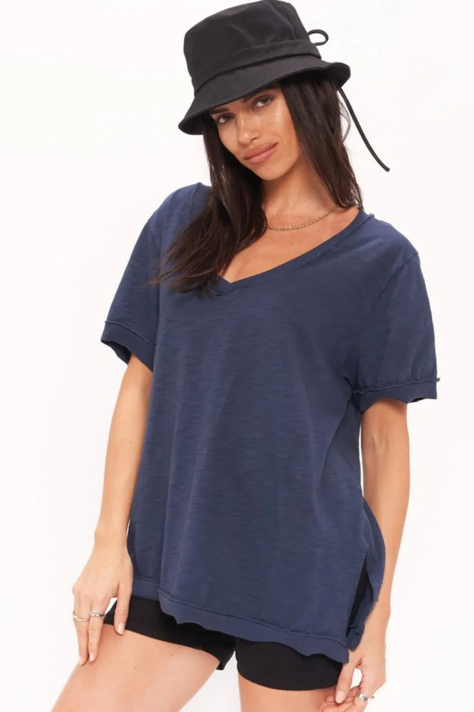 Our Knock Out V Neck Tee Is A Revamped Play On Your Typical Boring Tee. With A Relaxed V-Neckline And Slit Side Seams, And Contrast Rib Bands Throughout, This Tee Hangs In All The Right Places. Combine That Silhouette With Our Signature 100% Slub Cotton Fabric, And You’Ve Got Your Next Favorite Tee.