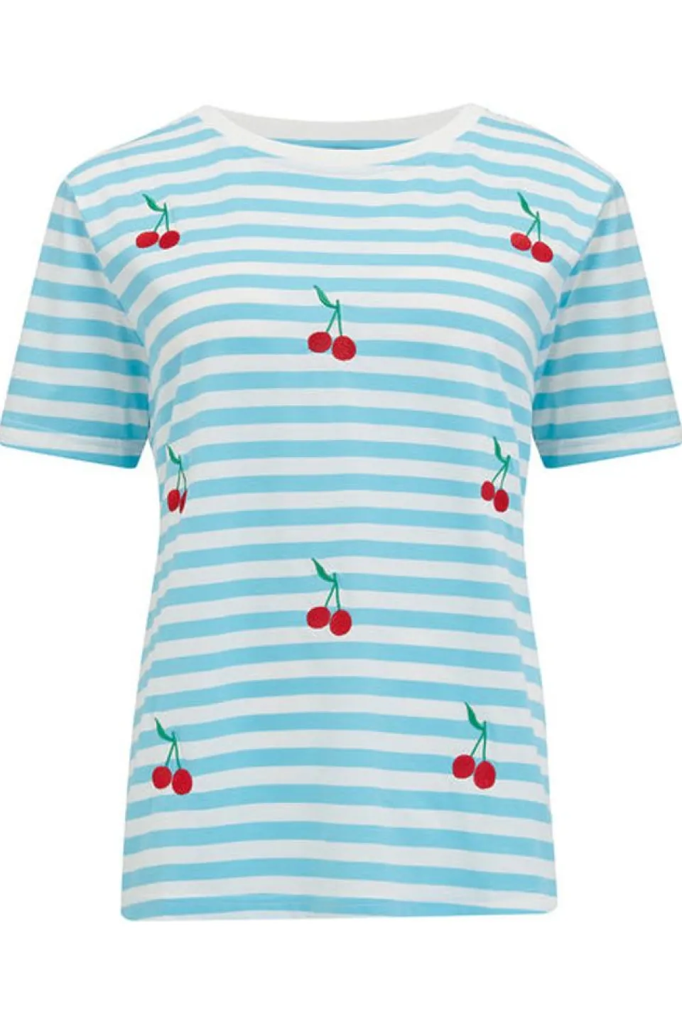 New Sugarhill Brighton Maggie T-Shirt – Blue/White, Cherry Embroidery