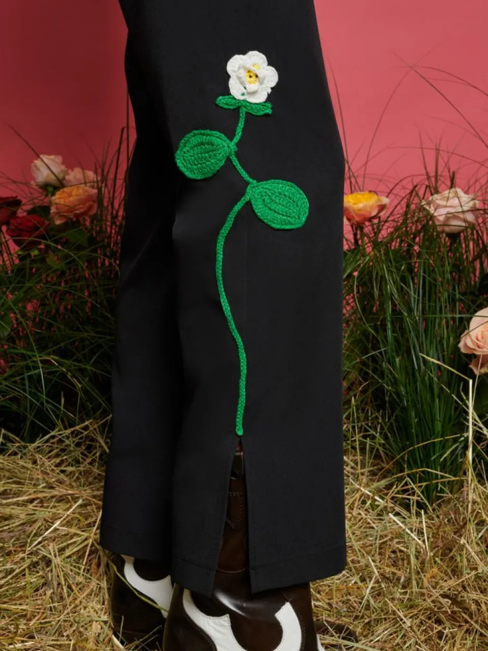 You Love To Drift In And Out Of The Daisies In These Soft-Suiting Trousers; The High-Waist Fit Is Perfect For Tucking In The Tallulah Rose Trim Blouse. Never Lost; You Find Your Way With The Crochet Flower Trim – A Decoration You’Ve Always Desired.