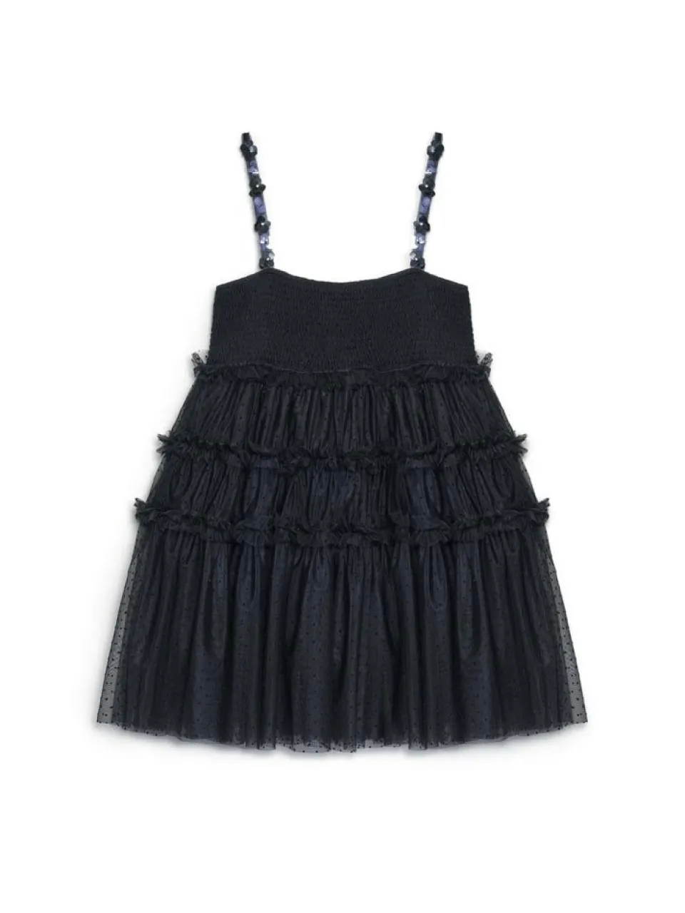 In Sweet Elegance, You Arrive Ready To Dazzle And Pick Your Bouquet. You’Re Dressed To Perfection In This Black Spot Tulle Mini Dress. You Adore The Shirring Bodice And Delicate Sequin Flower Strap Trims. In A Cascade Of Gathered Tulle And Frills, Everyone Can Agree; These Tiers Are A Triumph.